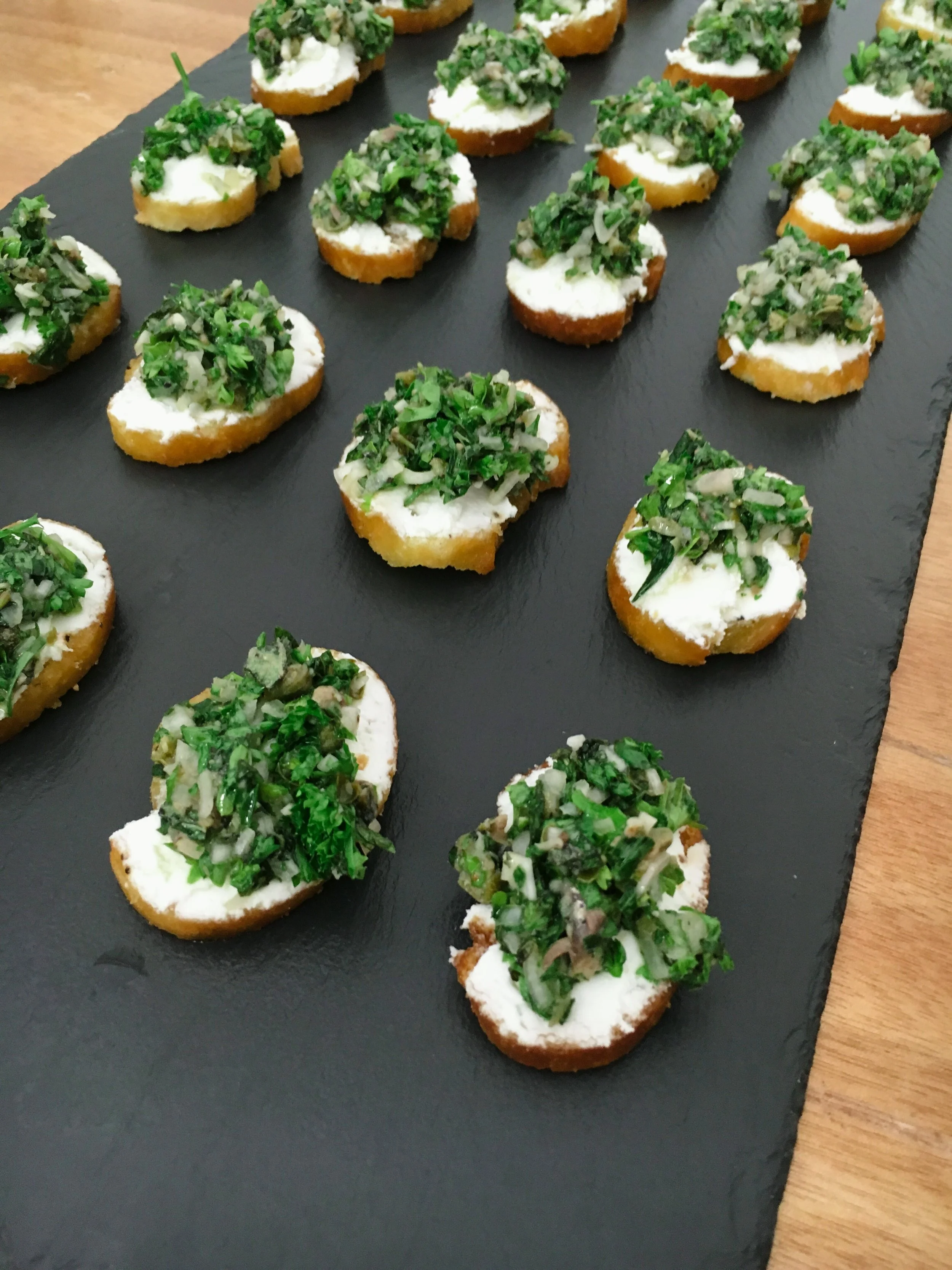 Cream cheese, yoghurt, anchovy & za'atar crostini